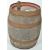 A vintage 20th Century oak and iron bound barrel of typical form having four iron bands and embossed plaque atop. Wear commensurate with age. Measures approx; 48cm x 33cm.
