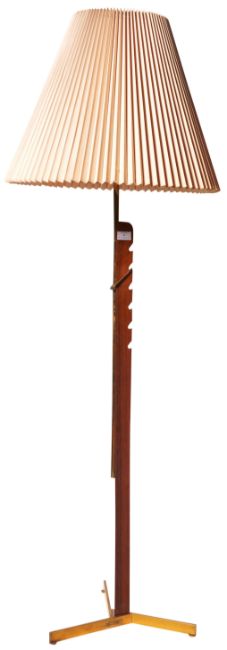 Svend Aage Holm Sørensen - Holm Sørensen & Co - An original retro vintage 1960's Danish teak wood floor adjustable height standing light standard lamp comprising of a pleated shade set to an adjustable teak bar and brass column over three leg base. Measures approx; 160cm. (adjustable)