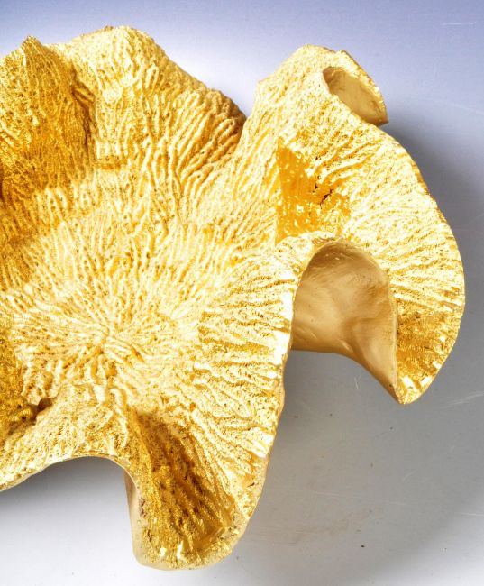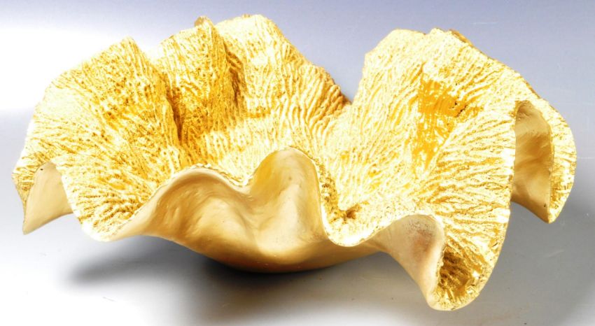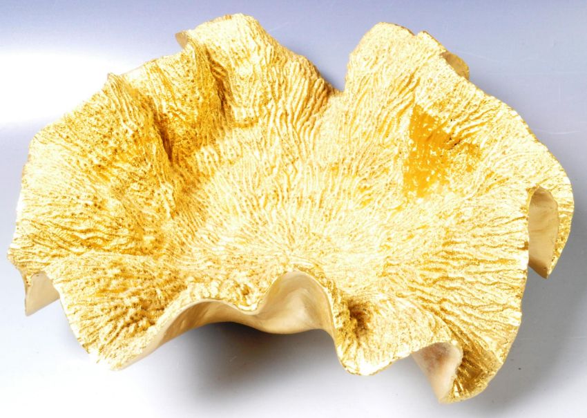 A late 20th Century Hollywood Regency faux coral gilt centrepiece bowl of natural form having a scalloped formed edge with coral textured and gilt finish. Measures approx; 36cm wide.