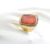 A 14ct gold diamond and carnelian panel ring being set with a large carnelian panel with a halo of round cut diamonds to the head, raised on reeded shoulders. Carnelian measures 23 x 18mm. Marked 14k to the inside of the band. Weight 27g. Size 1.5.