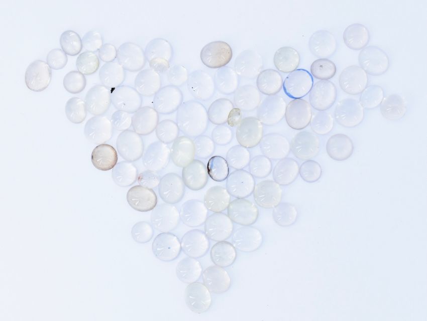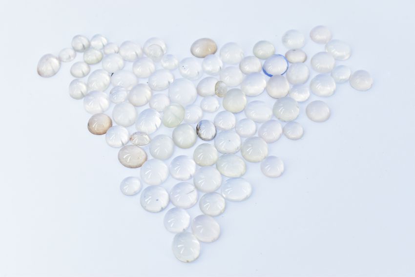 LOOSE GEMSTONES -  A quantity of star quartz cabochons most exhibiting asterism. Measure approx  range 6mm x 3.4  /  14mm x 11mm x 5.8mm some smaller, some larger.  Total Weight 282ct / 56g.