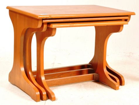 A collection of retro vintage circa 1970s furniture comprising of a melamine topped kitchen table, a retro vintage nest of table together with a leatherette pouffe. Measures 77 x 80 x 60 cm.