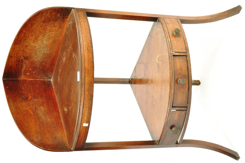 An 18th century George III  mahogany inlaid  corner two tier wash stand, single drawert to lower tier raised on shaped supports with arched gallery back. Measures, 105cm x 43cm x 43cm.