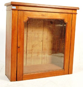 A 19th century Victorian mahogany glazed hanging bookcase cupboard having a flared top over a single door opening to reveal. Measures 90 x 90 x 31 cm.