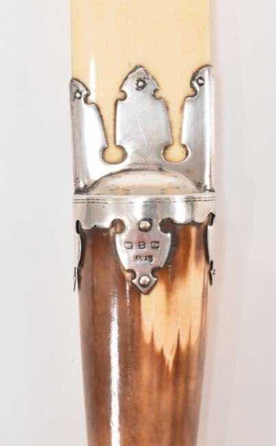 A 19th Century Victorian silver and ivory page turner having silver crenelated fittings (hallmarked Birmingham 1899). Makers marks for Hilliard & Thomason. Measures 40cm.