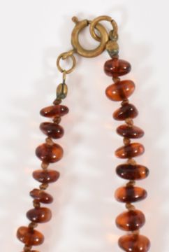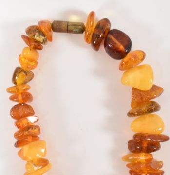 A group of three beaded amber necklaces to include two threaded nugget necklaces and a dark amber polished bead necklace. Two measure 25 and one measures 26 inches. Total weight 101.6g.