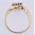 An 18ct gold diamond and sapphire crossover ring set with a round cut diamond and sapphire. Marked 18ct to the band. Diamond measures 3.4 mm diameter, sapphire measures 3.7mm diameter. Weight 1.9g. Size M.