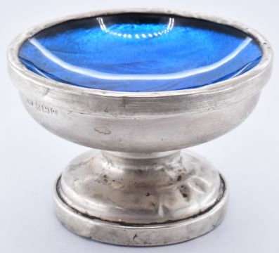 An Arthur Willmore Pennington silver hallmarked trinket dish having a bowl to the top set with a faux butterfly wing to the bowl. Hallmarked Birmingham 1924. Measures 4cm tall. Filled. Weight 99.2g.