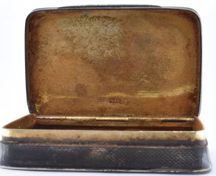 A Colen Hewer Cheshire Art Deco era silver hallmarked tobacco box having an engine turned exterior with a round panel to the top. Hallmarked Chester 1924. Weight 86.7g. Measures 7.3cm wide.