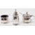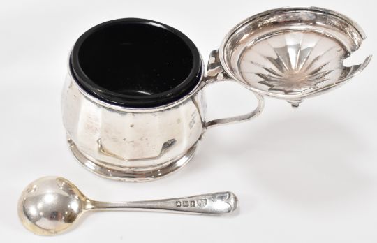 A mid 20th Century Mappin & Webb silver cruet set comprising table salt, pepperette and lidded mustard pot having faceted sides. Hallmarked Birmingham 1949. Together with two unassociated silver cruet spoons. Set within a fitted Mappin & Webb case. Silver weight 63.8g. Pepperette measures 7cm. Measures 8x8cm.