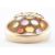 A 14ct gold ring being set with ten oval cut gemstones. The ring set with three rows of red, yellow, purple, green and blue stones including citrine amethyst, topaz, garnet. Marked 14k to the shank. Weight 3.6g. Size M.5.
