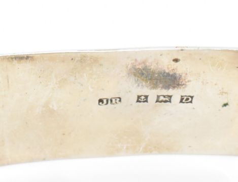 A group of three silver hallmarked napkin rings. The lot to include a John Rose napkin ring of semi circular form with engraved floral sprays, a Wilmot Manufacturing Co napkin ring with foliate borders and a Thomas Hayes gadrooned napkin ring with unengraved panel to the front. First hallmarked Birmingham 1953, second hallmarked Birmingham 1945 the third hallmarked Birmingham 1891. Total weight 65g.