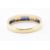 A hallmarked 18ct gold diamond and sapphire ring. The ring being channel set with four square cut sapphires and four round cut diamonds. London import marks for 1991. Weight 3.8g. Size M.5.