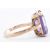 A hallmarked 9ct gold and synthetic colour change sapphire dress ring. The ring being set with an emerald cut sapphire in a basket setting. Hallmarked Birmingham 1971. Weight 4.5g. Size P. Sapphire measures 14mm x 10mm x 6.2mm.
