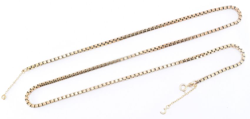 A hallmarked 9ct gold box chain necklace. Makers mark P.G. Hallmarked for London. Date letter D for 1978. Measures 62cm in length. Total weight 24.7g.