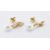 A pair of 18ct gold stud earrings having a twist design set with pearls to the bottom and three round cut diamond accent stones above. Earring backs marked 18k. Weight 2.9g. Measures approx 2.2cm.