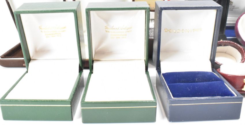 A collection of vintage jewellery boxes to include makers such as Cairncross, J. H. Cutting, F. H. Fish & Sons, Hamilton & Inches, Francis Wain and Longmire.