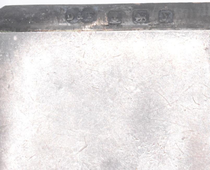 A pair of hallmarked silver vesta cases to include a vesta case with engine turned decoration with engraved initials to a central cartouche (hallmarked for Birmingham, 1921) with a plain example (hallmarked for Birmingham 1923). Also accompanied by a Archiduc Charles Heidsieck champagne brass vesta case. Largest measures 6cm x 4cm x 1cm and smallest measures 4cm x 5cm x 1cm. Total weight of two silver vestas 65.04g.