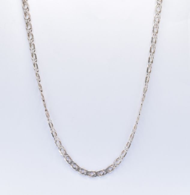 A collection of silver necklaces and bracelets to include a popcorn necklace and bracelet, flat curb link necklace, collar necklace with spiral links, knot design necklace and a fine link necklace chain. Longest measures 24 inches, shortest measures 18 inches. All marked 925. Weight 120g.
