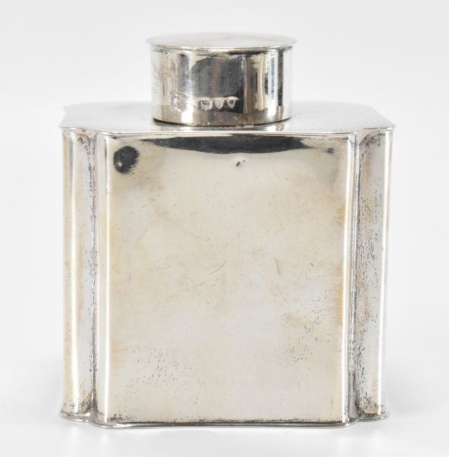 A 19th Century Victorian silver hallmarked tea caddy of canted rectangular form The caddy having a round lid to the top. Hallmarked London 1893. Weight 171.5g. Measures 9cm tall. Makers mark rubbed.
