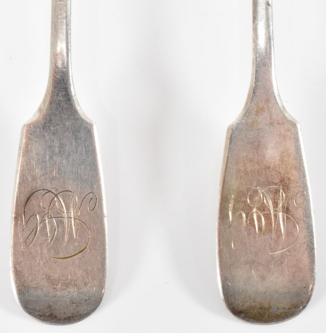 A set of six silver hallmarked teaspoons. Hallmarked Newcastle, date letter x for 1836, sponsors mark for John Walton. Measures 14cm. Total weight 84g.