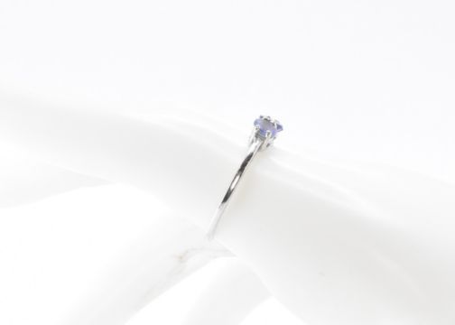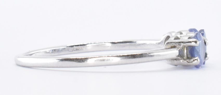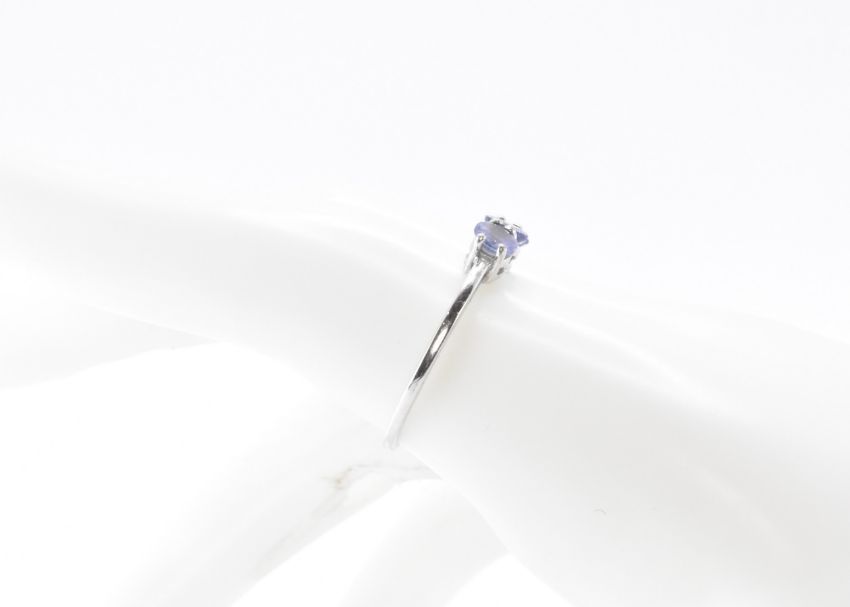 A 9ct white gold ring being set with three round cut amethysts. Hallmarked Birmingham 2012. Weight 1.9g. Size S.