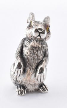A silver rabbit figure. The figure having engraved features and amber glass eyes. Measures 3cm tall. Total weight 13.48g.