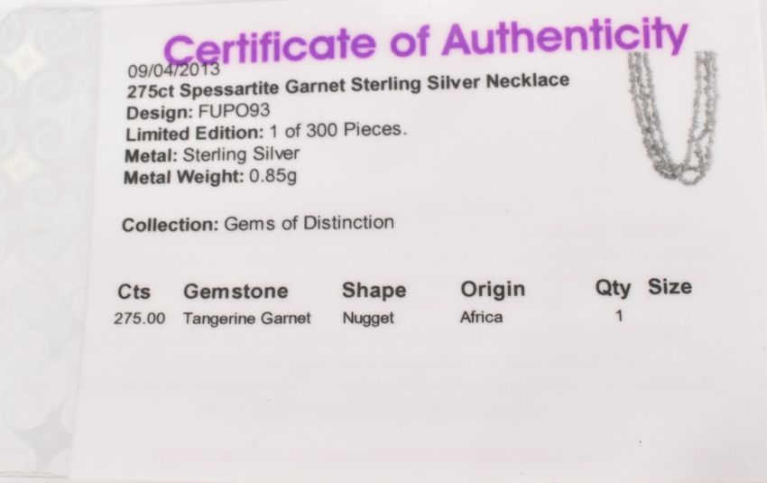 An assortment of four gemstone necklaces having rough nugget beads and featuring iolite, apatite and tangerine garnet. The tangerine garnet with a marked 925 silver clasp and tags still attached. Two of the necklaces accompanied by certificates. Measures 44cm in length.
