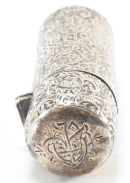 A group of silver items to include a contemporary Victorian style buckle bracelet (marked 925, measures 9 inches), a silver hinged opening bangle bracelet with engraved decoration (marked silver, measures 16.5cm circumference),  a silver compact of square form with engine turned decoration (hallmarked Birmingham 1923, 5cm), a silver scent bottle with a hinged top and floral engraving (hallmarked Chester 1891, 6cm) and a miniature silver plated jug (measures 7cm). Silver weight 120g.