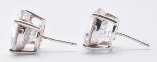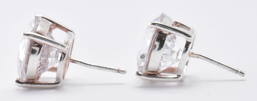 A pair of silver stud earrings being set with large round cut CZ's. Heads measure 1.2cm diameter. Posts marked 925. Weight 6.6g.