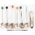 A set of six silver hallmarked coffee bean spoons with coloured coffee bean finials (hallmarked Birmingham 1939, one with missing finial, measures 10.5cm), a Victorian silver bladed fruit knife with a mother of pearl handle (measures 15cm), a silver propelling pencil (marked sterling silver, measures 9cm) and two silver plated mechanical pencils. Silver weight 53.3g.