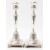 A par of silver candle sticks having reeded scones with tapering columns and reeded bases. The candlesticks being raised on square bases with scroll engraving. Marked 925. Weighted, total weight approx 634g. Measures 24cm tall.