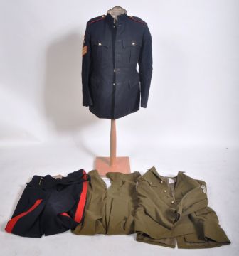 Two original vintage (1950's) REME Royal Electrical and Mechanical Engineers Staff Sergeant blue patrol and khaki battle dress uniform. The uniforms comprising a tunic with Staff Sergeant 3 chevrons to the right arm below the regimental insignia and matching trousers.