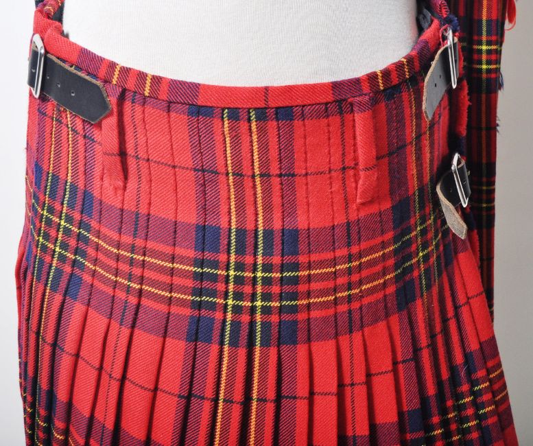 A traditional Scottish Highland dress kilt with Fly Plaids. The 100% pure new wool tartan Kilt by makers Locharron having a Leslie Clan pin badge to the front apron and x2 matching Fly Plaids.