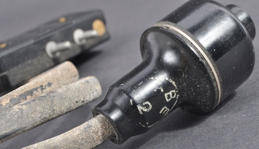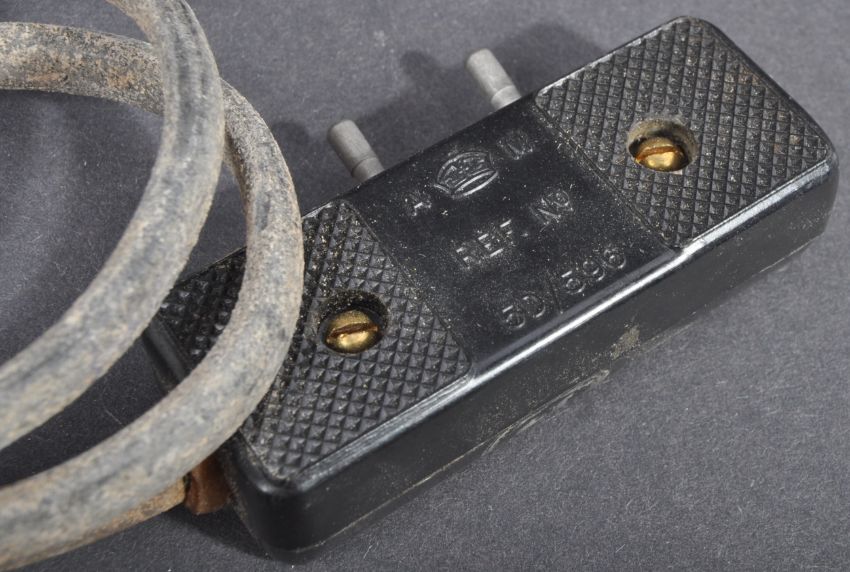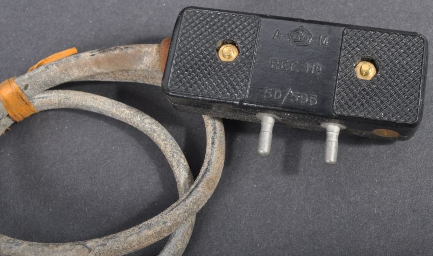 An original WWII Second World War RAF Royal Air Force Air Ministry bomb aimer's Bomb Release switch from a Lancaster Bomber. The Bakelite switch with Air Ministry markings and part number 5D/596. Appears unused / ex Stores