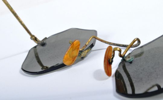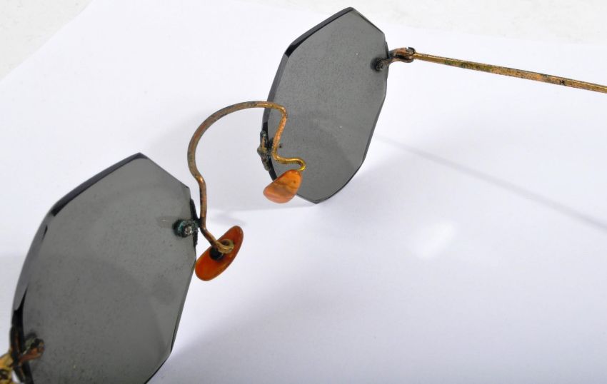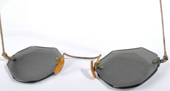 Kasturba Gandhi (Gandhi's wife) gifted these frameless sunglasses to Gandhi during his trip to South Africa 1893-1912, during his young age Mr Gandhi used to wear blazers and suits during his trips abroad. Mr Gandhi & Mrs. Kasturba Gandhi gifted these glasses to my grandfather as a gift in 1939-40 (not sure about the exact year) after his jail term for organizing a rally in Rajkot (Gujarat) and effectively participating in the Quit India Movement, in Bombay. They were then passed down to me when my Grandfather passed away and have been in my possession ever since.