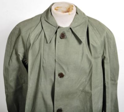 A large collection of WWII Second World War era French Military M1938 Dismounted Raincoat style jackets. Heavy duty rubberised canvas construction. Marked to the inside ' Barmette Paris '.