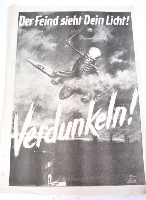 WWII Second World War - a collection of x7 vintage WW2 ' Home Front ' type propaganda display posters to include both British / English examples and some German Nazi examples. All printed on newspaper stock. Age unknown, suspected a post-war replicas of some age. Approx Measures ; 57x41cm.