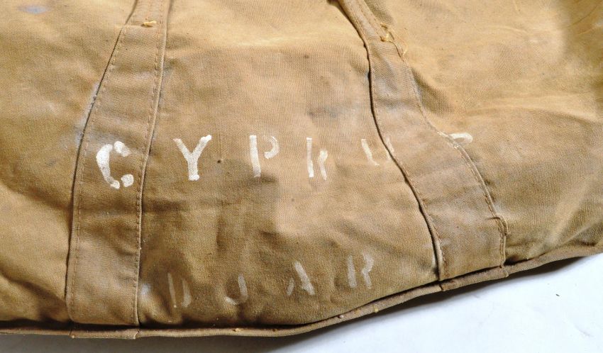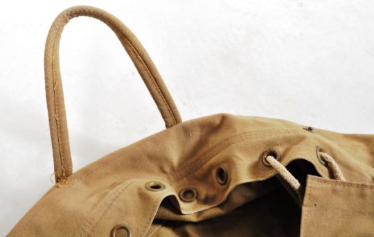 Two original WWII Second World War Auxiliary Territorial Service canvas kit bag holdalls. Top opening with ten brass eyelets for cord lacing and the covering flap attached by two metal snap fasteners and two carrying handles. Dated 1945 and marked Cyprus to the front. Both named to the same individual W/111839 B.I Ludlow.