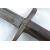 An original WWI First World War European rifle bayonet. The bayonet having a hooked pommel with push release button, a slim wooden grip and crossguard with muzzle ring and straight tapering quillon. The crossguard marked BN 8327 and ricasso faintly marked ESCIA. Fullered blade housed in a steel scabbard. Measured approx 43cm.