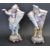 A pair of 19th century Royal Berlin KPM Bisque ceramic figurines of a boy and girl with cornucopia baskets decorated with multicolour floral motifs raised on a tree stump base with makers mark to the base. Measures 27 cm tall.