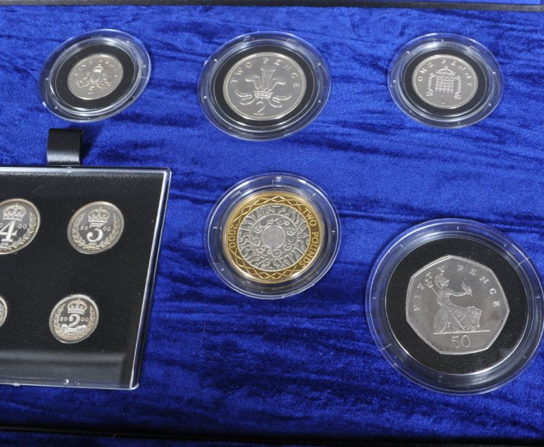 A Royal Mint United Kingdom Millennium Silver Proof Collection comprising of nine coins and Maundy set in fitted box with certificate.