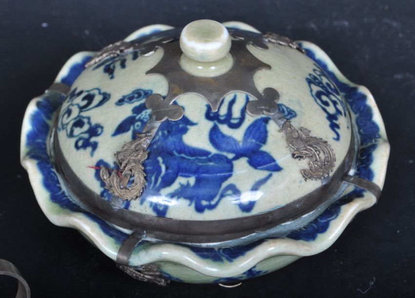 A collection of vintage 20th century Chinese Oriental teapots teapots of various styles having metal handles with pierced detailing.