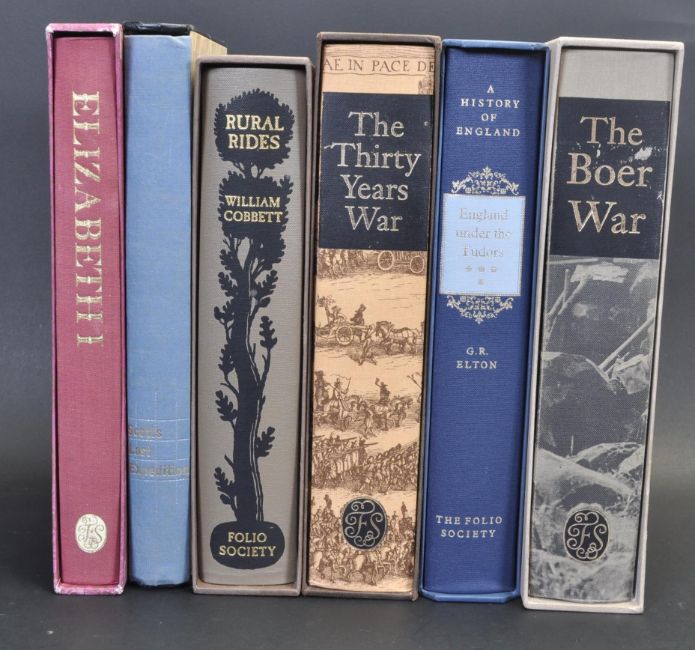 A collection of 7 vintage 20th century Folio books to include Elizabeth R, Scotts Last Expedition, Rural Rides by William Corbett, The Boer War, England under the Tudors by Thomas Pakenham, The Thirty Years War by C V Wedgwood. Collection comes with 5 editions of the Slang and its Analogies.