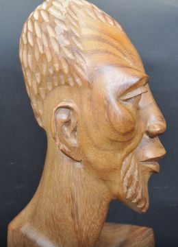 A vintage retro mid 20th century hand carved hard wood African / tribal figurine / bust. The figurine depicting a an African male facing left. Measures 42 cm tall.
