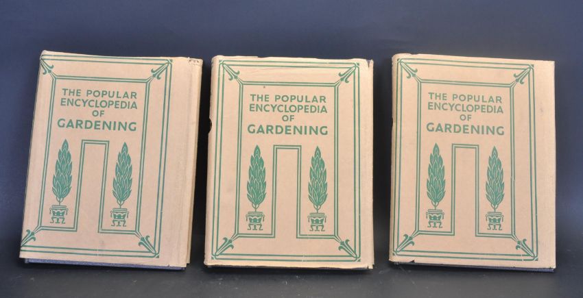 A three edition Popular Encyclopaedia of Gardening hardcover books. Edited by H H Thomas and Gordon Forsyth. Published by Waverly Book Company Ltd. Published 1930.