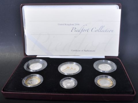A 2006 Piedfort Silver Proof 925 six coin collection comprising of a Victoria Cross 50p The Award, Victoria Cross 50p The Heroic Acts, Egyptian Arch Railway Bridge Northern Ireland £1 coin, Queens 80th Birthday Piedfort Crown, Isambard Kingdom Brunel £2 The Man, Isambard Kingdom Brunel £2 Coin His Achievements. Boxed with certificates.