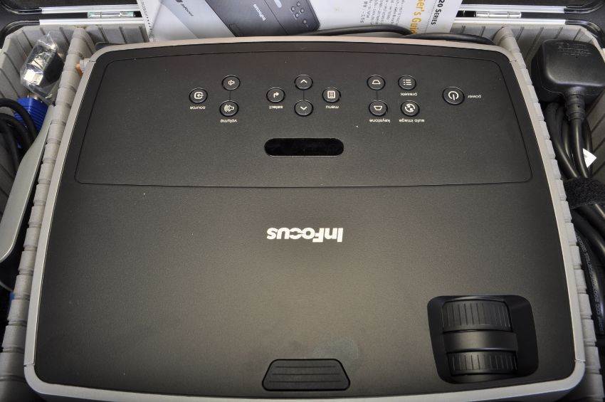 A contemporary InFocus IN20 series video project. The projector having audio out and in ports, computer in, USB, monitor out and video in ports. Complete with original hard case and remote control.