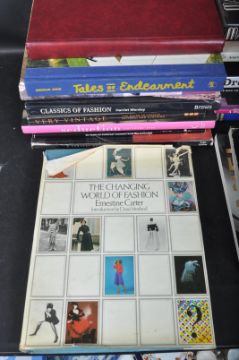 A large collection of vintage reference fashion books. The collection includes: Man’s Fashion Illustrations - Graphic Sha, Men’s Fashion The complete Sourcebook - John Peacock, Dressing In The Dark - Marion Maneker, The Changing World Of Fashion - Ernestine Carter, Fashion Memoir - Elsa Schiaparelli, Chanel The Couturiere At Work, The Lives Of Lee Miller - Antony Penrose, Seduction - Caroline Cox, and many more books.