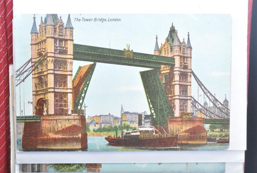 A collection of 56 vintage early 20th century and later postcards London related postcards containing London Bridge, Westminster Abbey, St Pauls, Buckingham Palace, Piccadilly Circus, Charing Cross, British Museum, The New Admiralty and more.